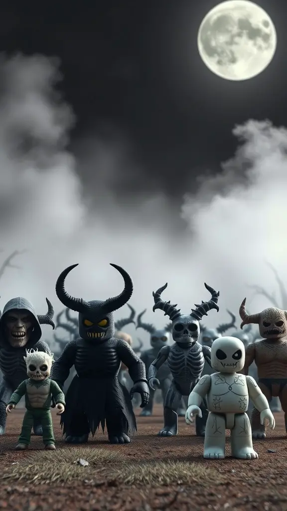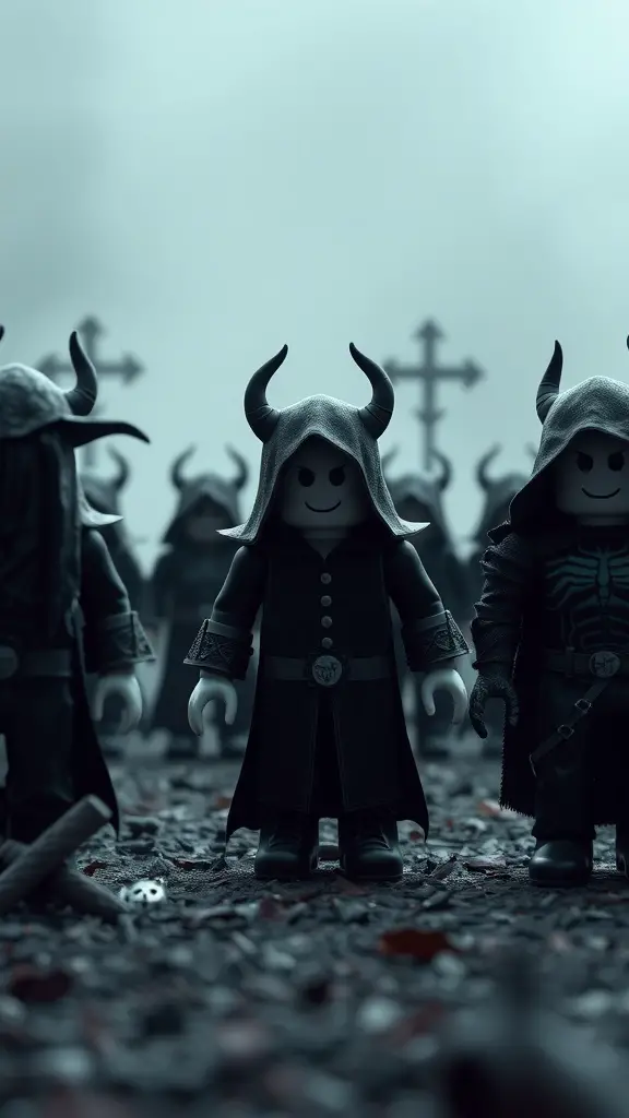 The Forsaken Realm is filled with intriguing characters that capture the essence of darkness. These figures, clad in mysterious robes and adorned with horns, create an eerie yet captivating atmosphere. Each character tells a story of their own, inviting players to explore their secrets and motivations.